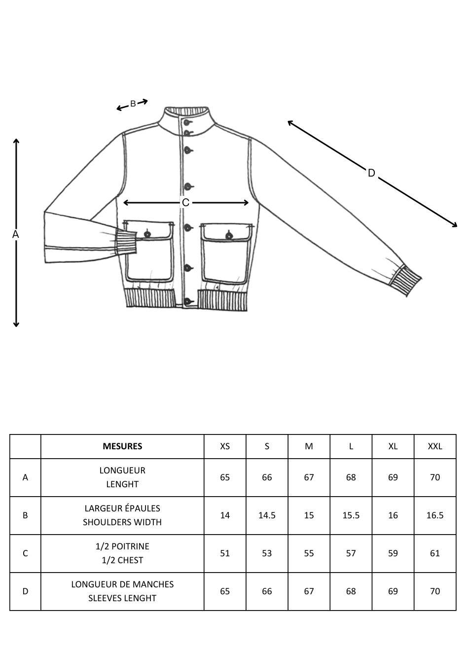 • Ribbed sleeves and bottom of the body